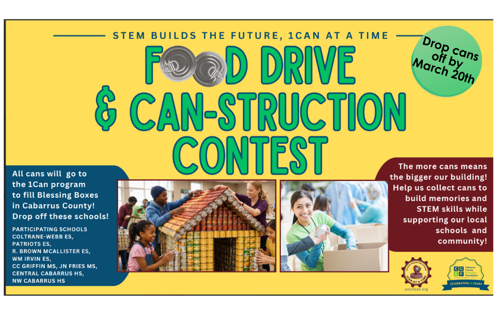 We are excited to partner with 1Can and the Cabarrus County Education Foundation (CCEF) for an upcoming Canned Food Art Challenge. Families are invited to donate canned goods that students will use...
