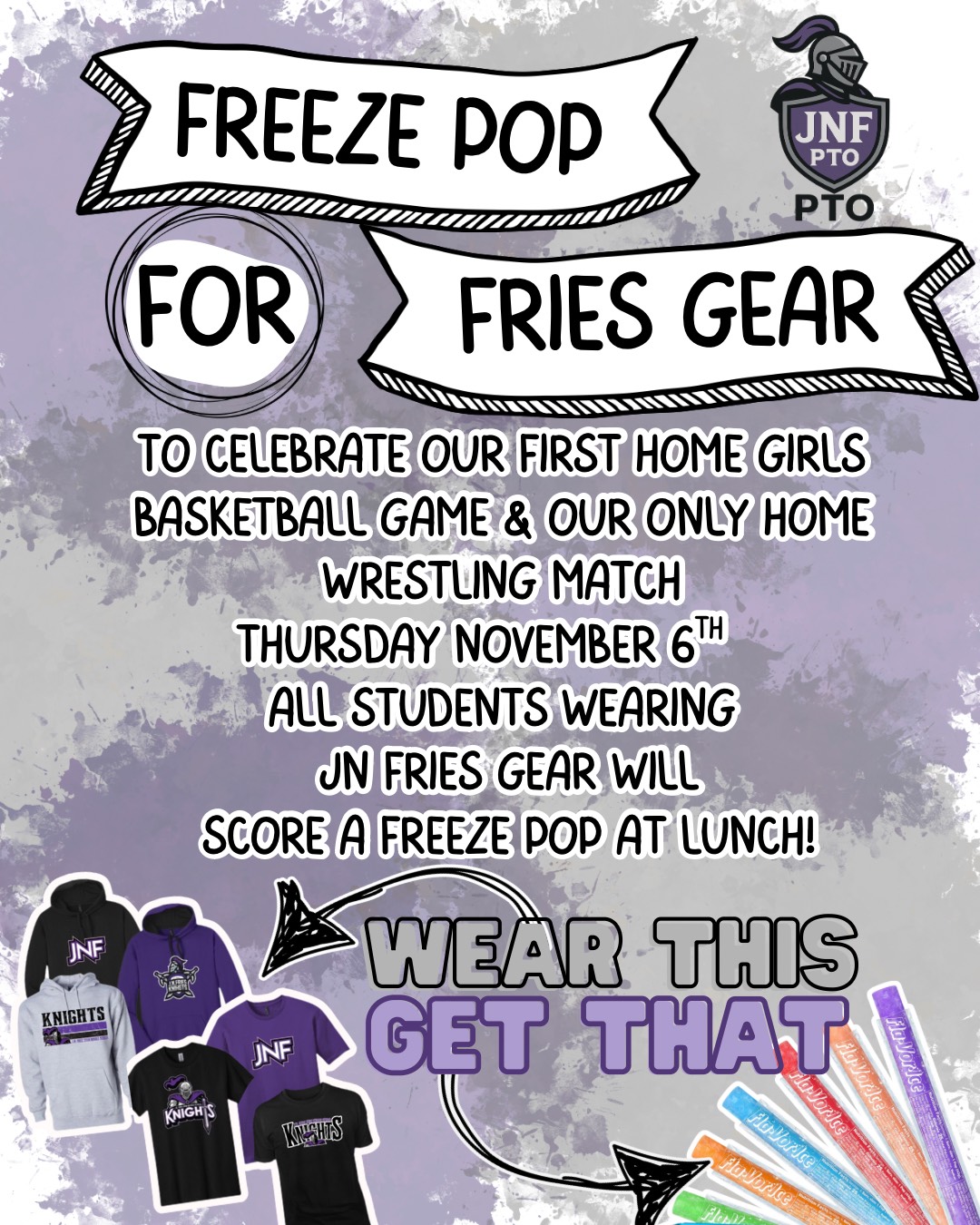 On Thursday, November 6th wear your school gear and get a freeze pop
