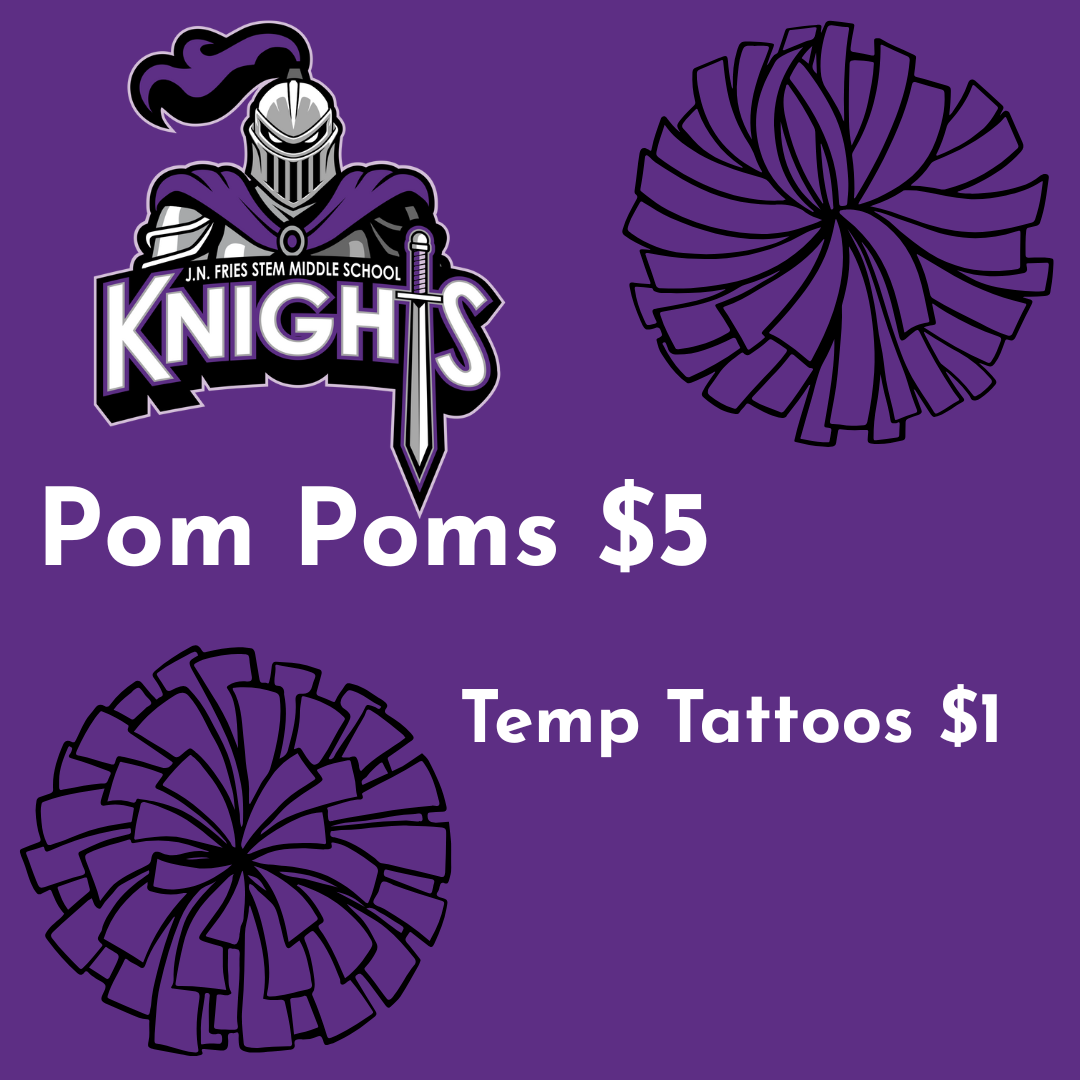 pom poms. You can purchase tattoos for $1 and pom poms for $5. Items