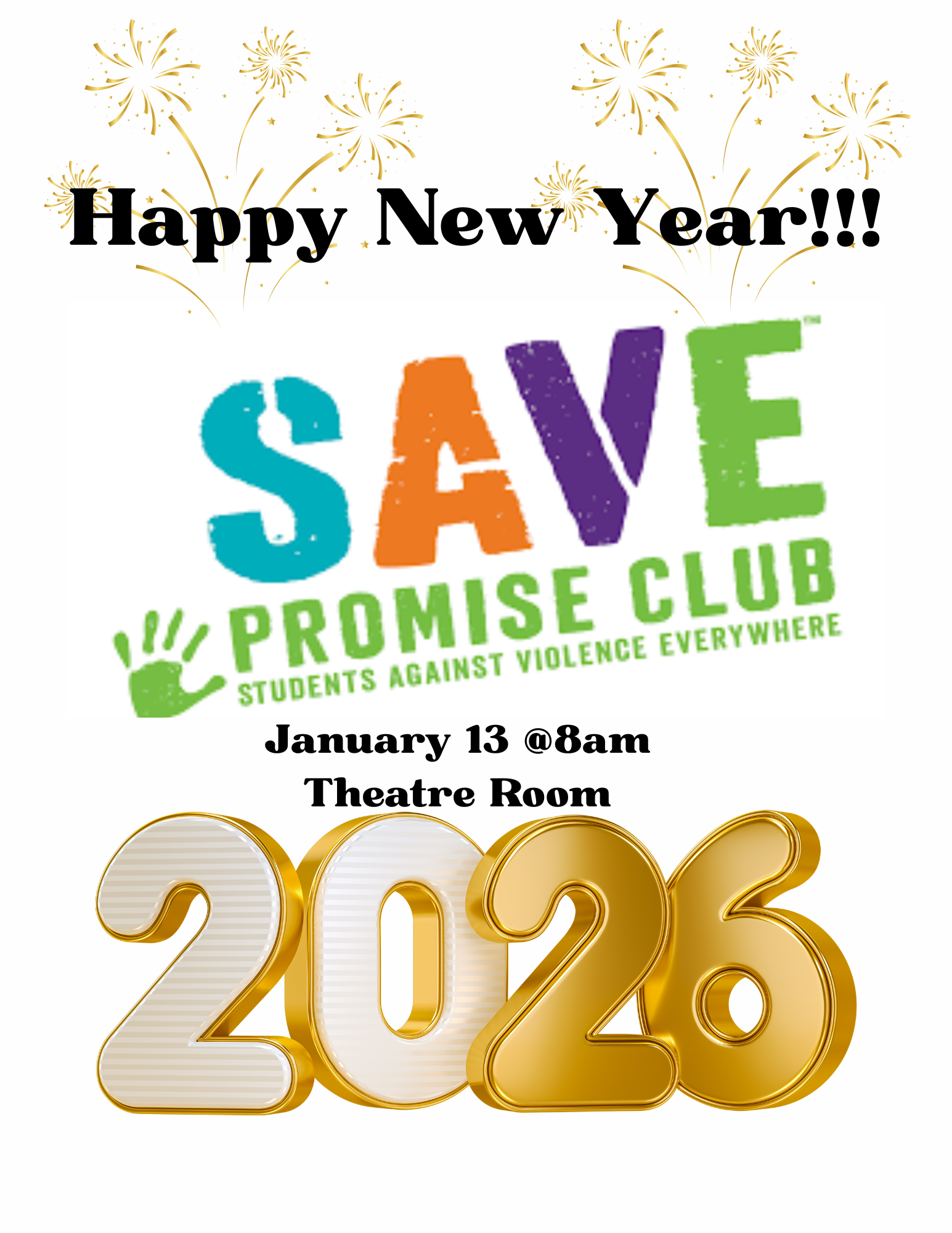 Happy New Year!!! SAVE Promise Club will meet January 13th at 8am in the Theatre.